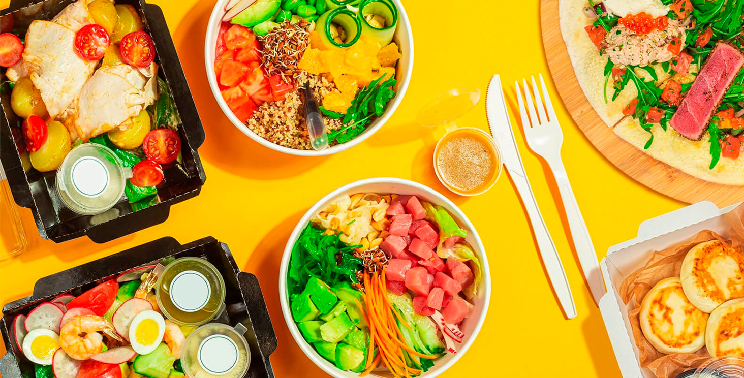 Выделим пять категорий блюд и рассмотрим варианты упаковки для них: готовая еда и супы, салаты, десерты и расходные материалы.