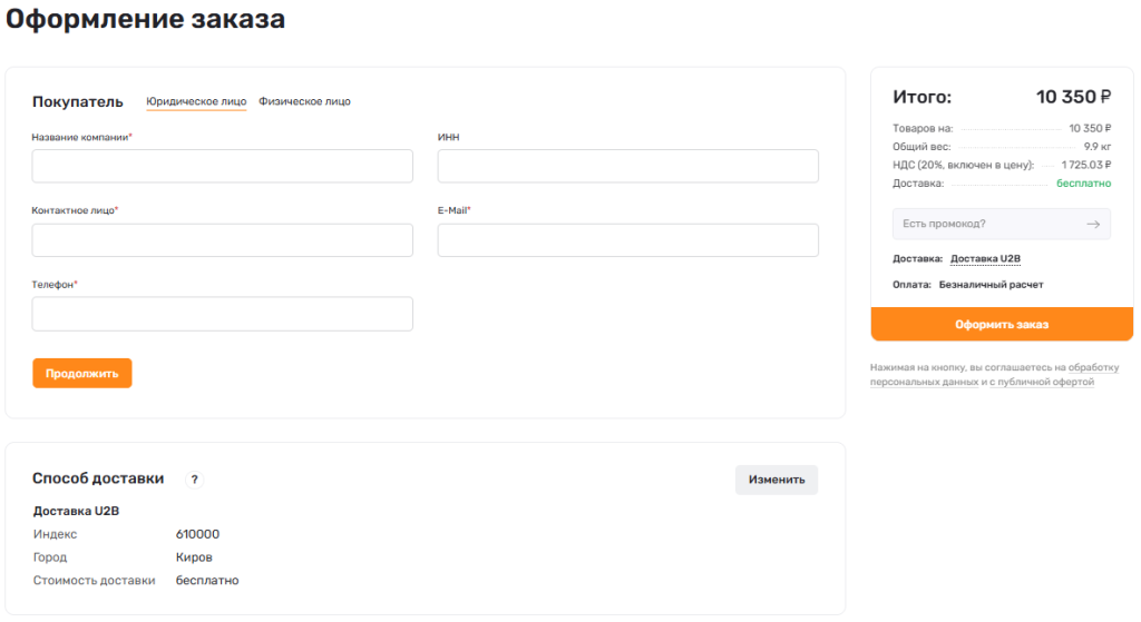 5. Еще раз проверьте данные и нажмите Оформить заказ.
